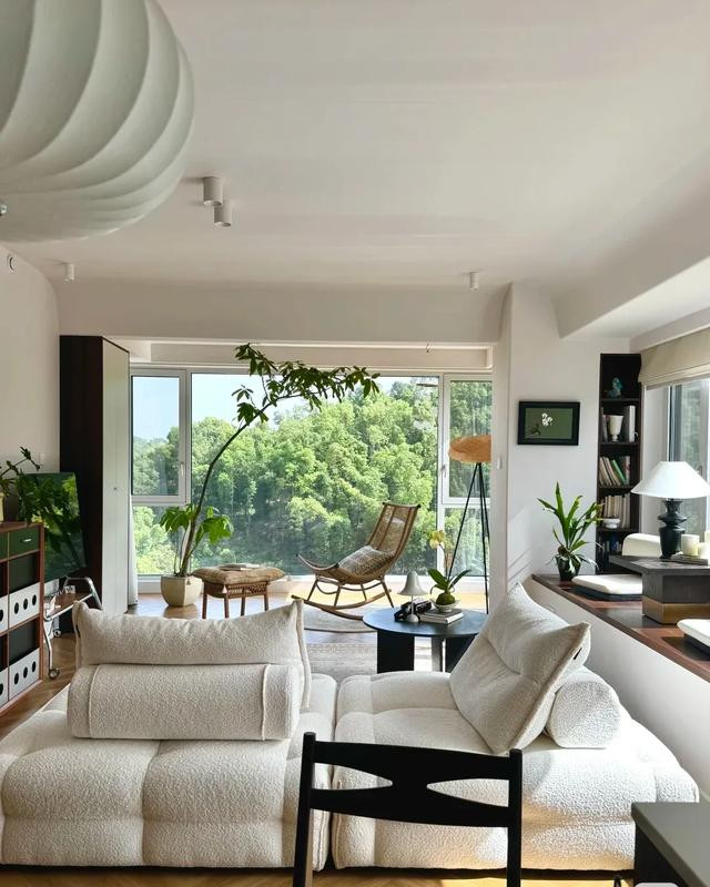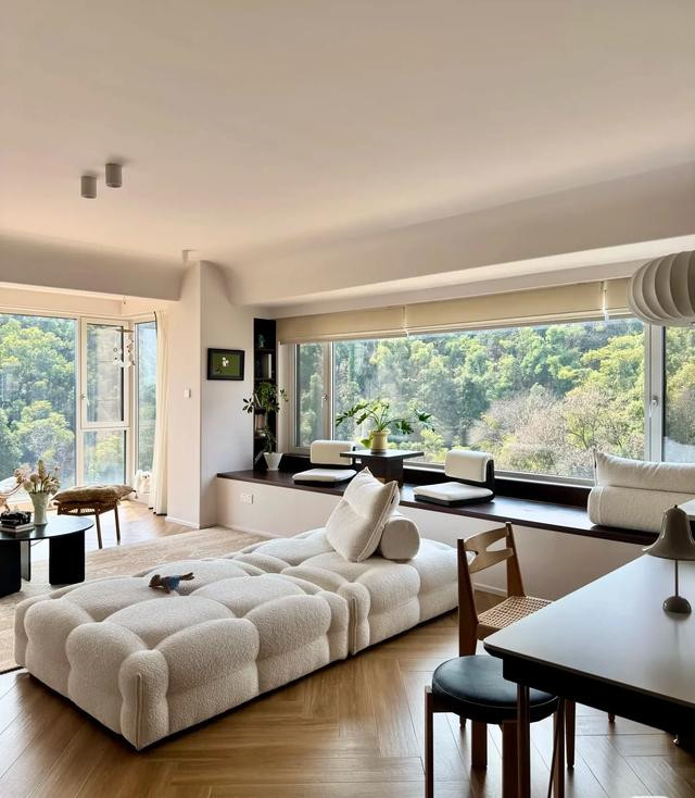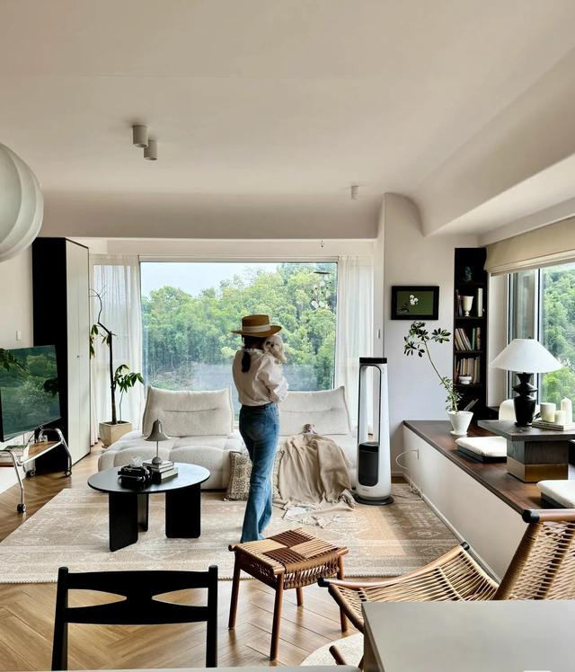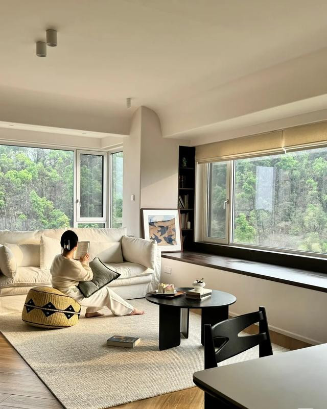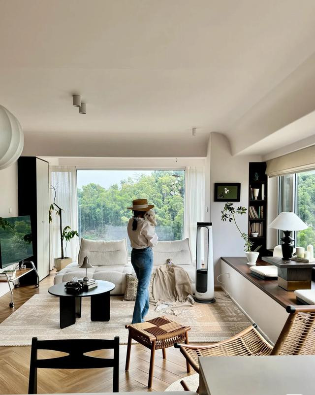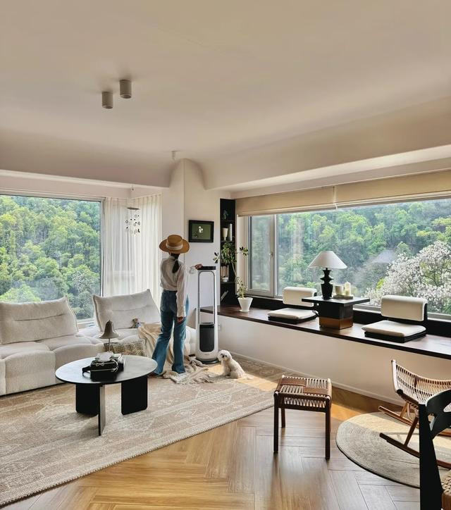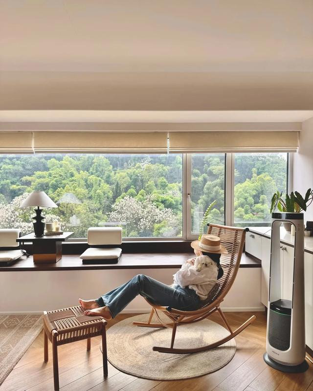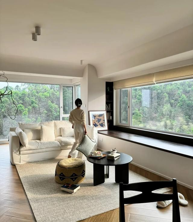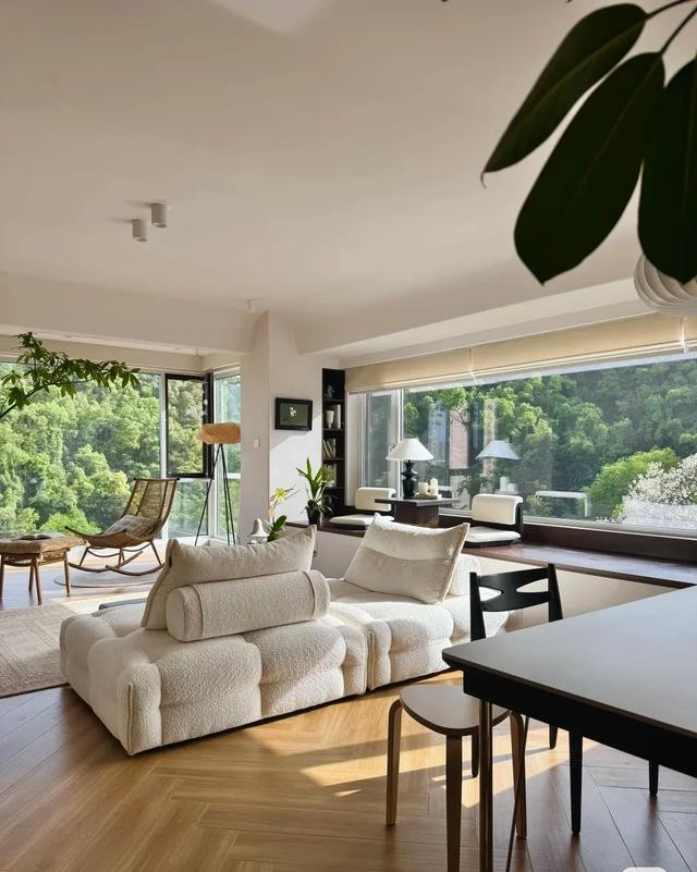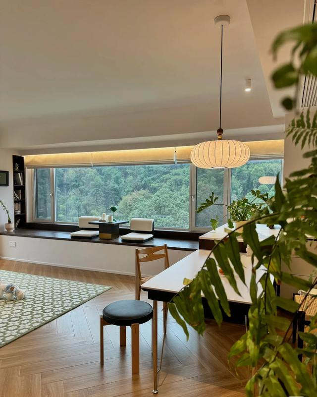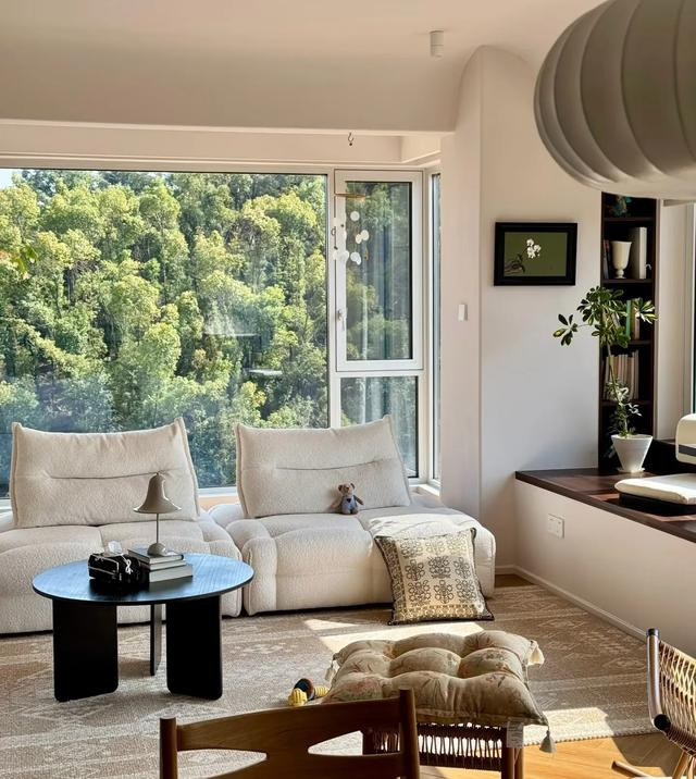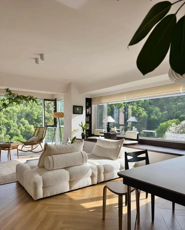 看看客厅外的窗景真心舒服啊!一眼望去,生机勃勃,绿色的树非常治愈,周围空气也是清新。