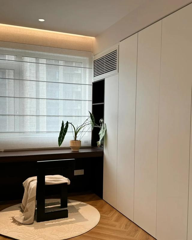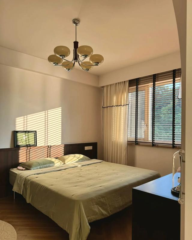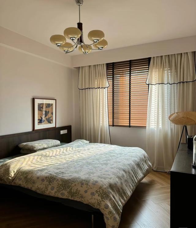 卧室区域设计真心可以,温暖舒适,这不就是理想中的卧室吗?卧室简单双眼皮吊顶,床头背景墙木饰面上墙,窗帘纯色窗帘➕木质百叶。